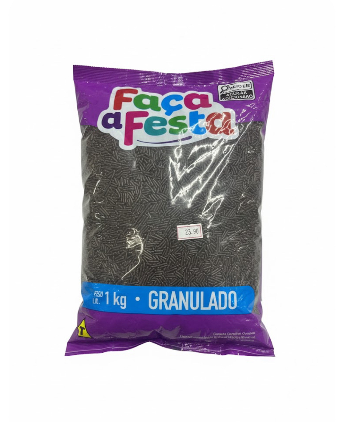 Granulado de Chocolate Faça a Festa, um ingrediente clássico e indispensável para a confeitaria, ideal para dar o toque final em doces e sobremesas.