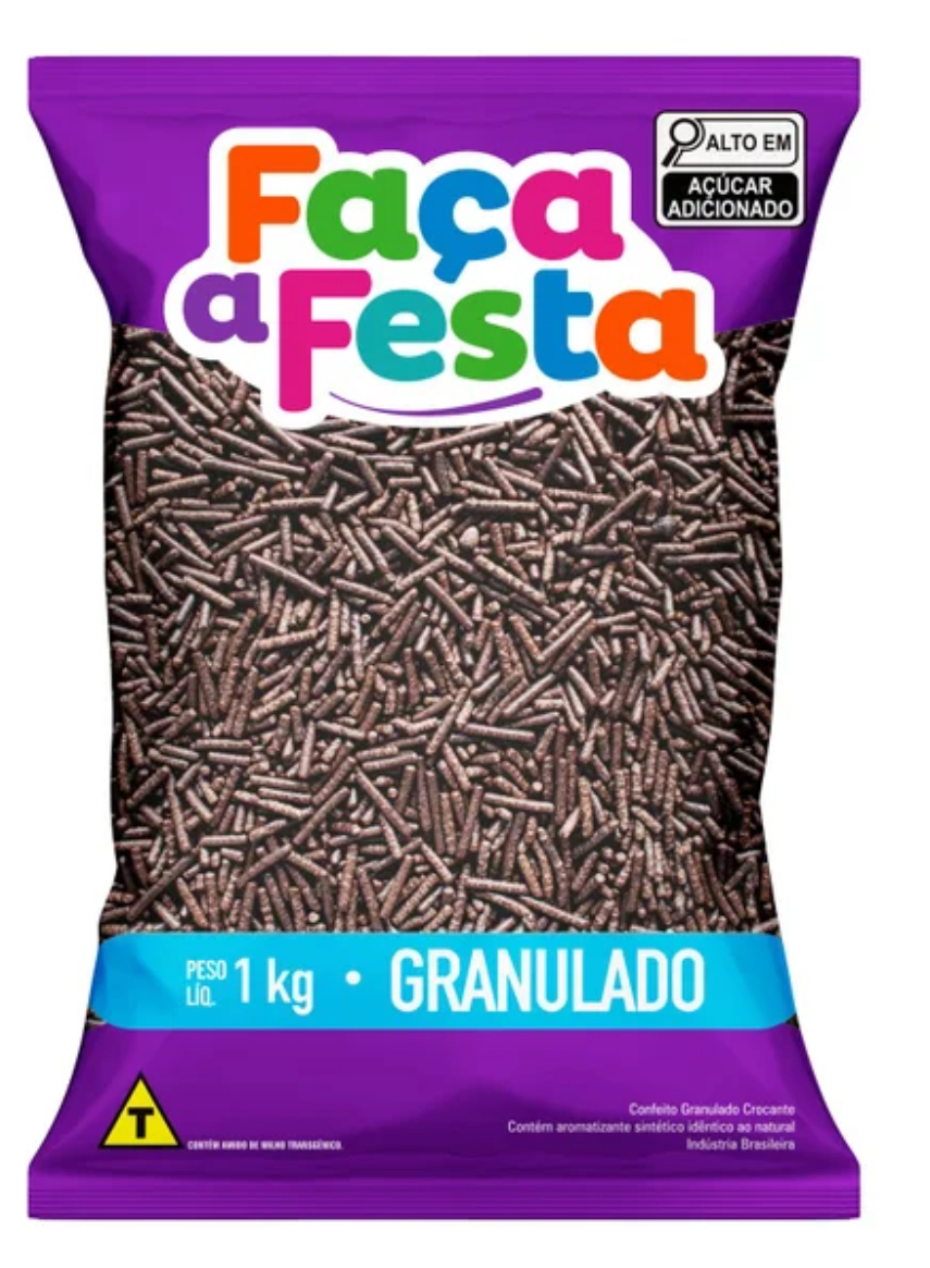 O Granulado Faça a Festa é um confeito de açúcar sabor chocolate, amplamente utilizado na confeitaria para decorar e agregar textura a uma variedade de sobremesas. É o acabamento padrão para o tradicional brigadeiro brasileiro.