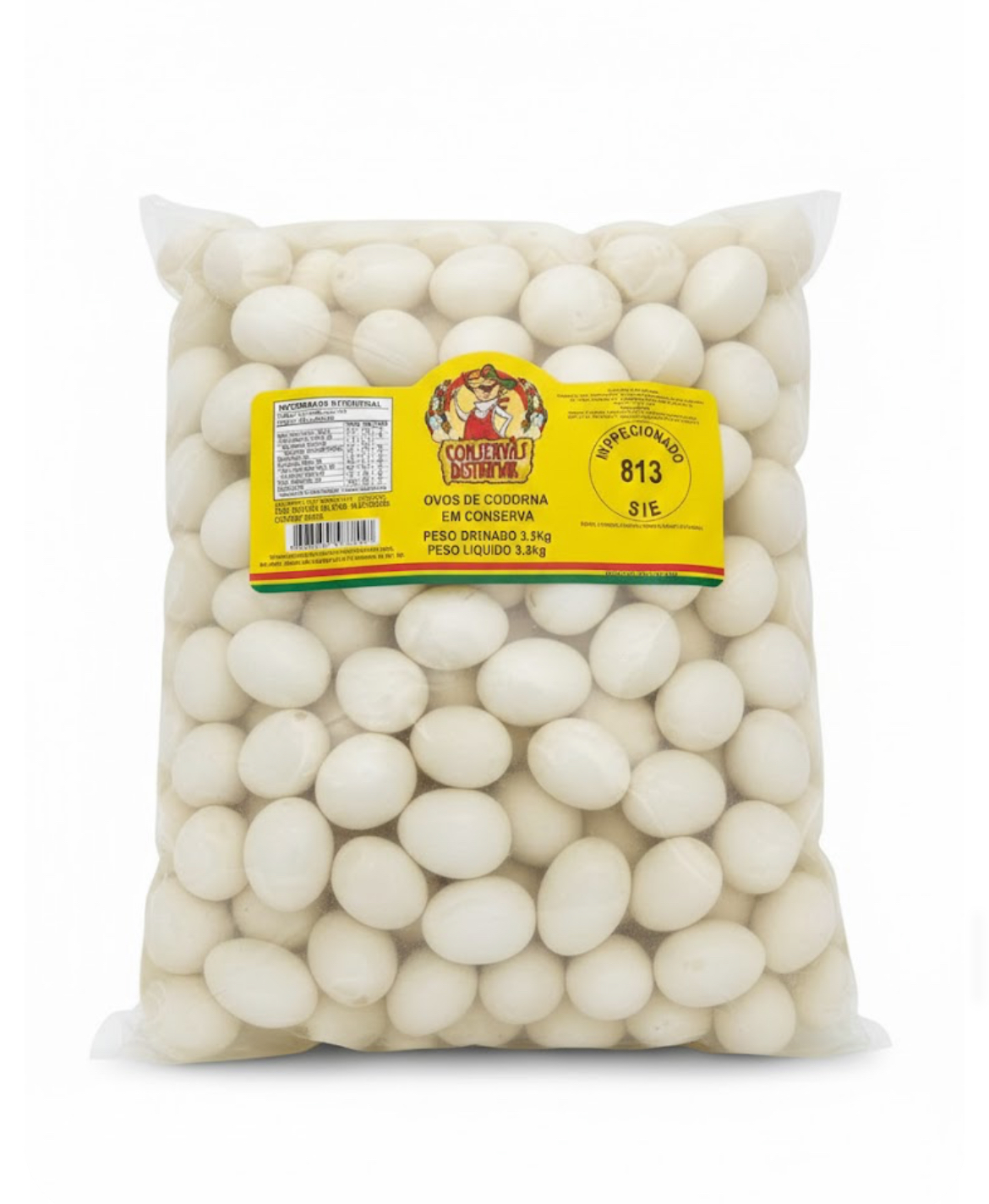 Este é um produto alimentício em embalagem institucional, ideal para restaurantes, buffets, eventos ou estabelecimentos que necessitam de grande volume de ovos de codorna prontos para o consumo.